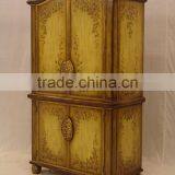 Vintage Style Carved Wooden Curio Cabinets, Hand Painting Wooden Sideboard, Classical Wood Console Cabinet For Living Room