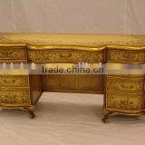 Antique Hand Carved Bedroom Furniture, Luxury Gold Painted Wooden Dresser, Classical Drawing Art Dressing Table