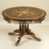 Antique Wood Carving Curio Dinning Room Table, Exquisite Gold Painted Round Dinning Table, Classical Drawing Art Dinner Table