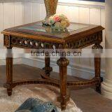 Exquisite Carved Wooden Side Table, Antique Gold Painting Coffee Table With Glass Top, Classical Style Living Room Square Table