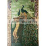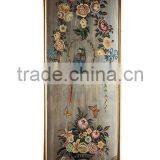 Hand Painted Peacock Pattern Wall Painting, Floral Art Painting Hanging Wall Picture, Solid Wood Carved Wall Art
