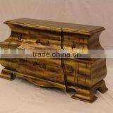 Antique Wooden Curio Cabinets, Exquisite Gold Painting Chest Of Drawers, Classical Wood Carved Console Cabinet