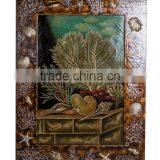 Retro Decorative Leather Wall Painting, Luxury Floral Painted Wooden Hanging Wall Picture, Classical Drawing Hanging Wall Art