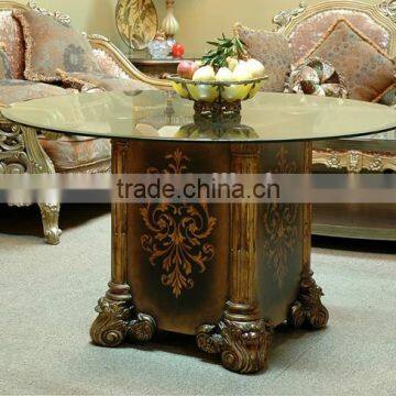 Hand Painting Round Coffee Table With Glass Top, Exquisite Wood Carved Side Table, Classical Style Living Room End Table