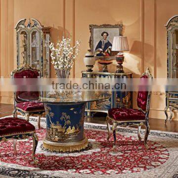 Retro Art Painting Home Furniture Dinning Room Set, Noble Blue Round Dinning Table With Chair/Sideboard