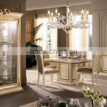 European Royal Classic Square Dining Table With Side Board and Display Cabinet/European Luxury Dining Room Furniture (MOQ=1 SET)