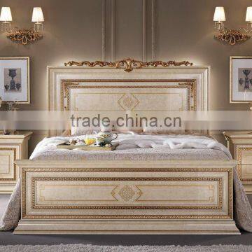 Bisini Luxury Gold Color Solid Wood King Size Bed With Matching Side Tables/Night Stands(MOQ=1 SET)