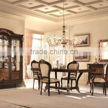 Elegant Solid Wood Golden Color Rectangle Dining Table With Upholstery Dining Chairs/Wooden Display Cabinet (MOQ=1 SET)