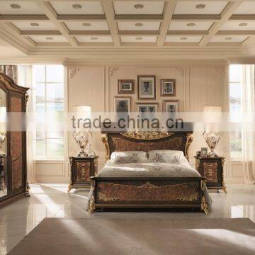 European Classic Wooden Hand Carved Gold Plated Bedroom Furniture/Italian Luxury Home Furniture Set(MOQ=1 SET)