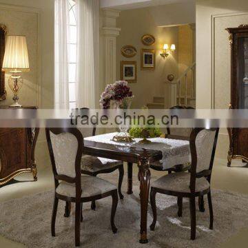 European Italian Style Solid Wood Hand Carved Veneer Dining Room Furniture Set/Golden Color Luxury Dining Room Table (MOQ=1 SET)