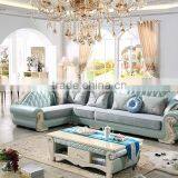 Warm Blue Color Flower Painting Fabric Corner Sofa Set