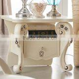 New Classic Consice Flower Carving Ivory White Side Table With Drawer