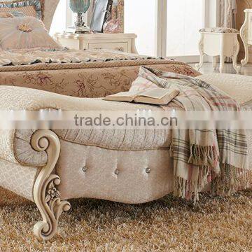 Graceful Solid Wood Hand Carving Matching Fabric Bed Bench