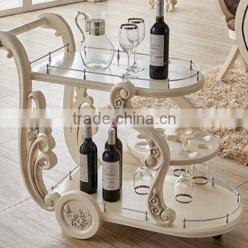 Ivory white color Solid wood hand carving dining trolley