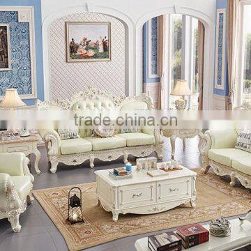 Solid Wood Hand Carved Home Furniture Living Room Leather Sofa Set