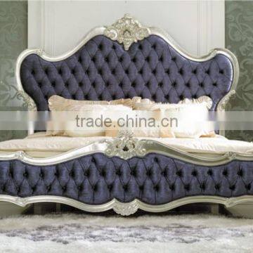 deluxe European style wooden double bedquality solid wooden with delicate hand carving in silver color