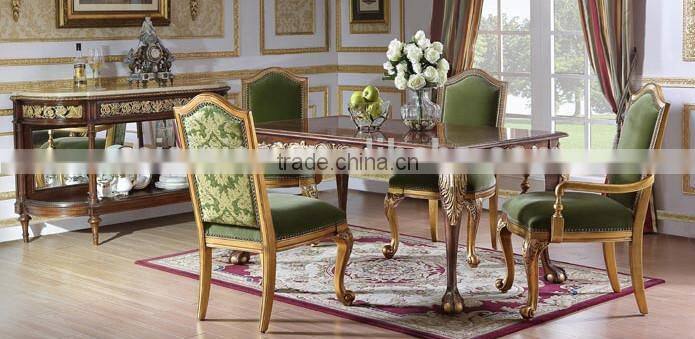 Emerald Replica Dinning Room Furniture, Carved Wood Rectangular Dinner Table With 6 Chairs, Formal Dinning Room Set