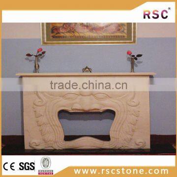 Indoor Used Lion Statue Beige Marble Fireplace Mantel