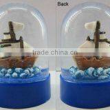 Plastic Sea Snow Globe With Boat Figurine Inner