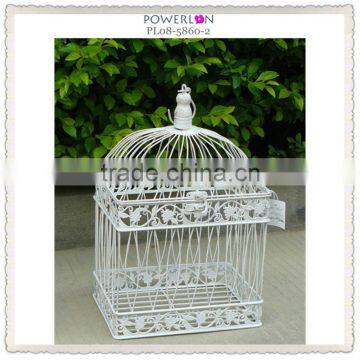 This a beautiful off-white metal decorative ornamental bird cage with blackdistressing/highlighted finish. It has an opening door, sliding bottom tray and hanging hook.It is a vintage design based on Victorian bird cages and would be lovely as a plant holder or wedding table centre-pieces.