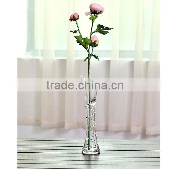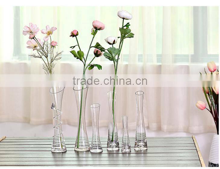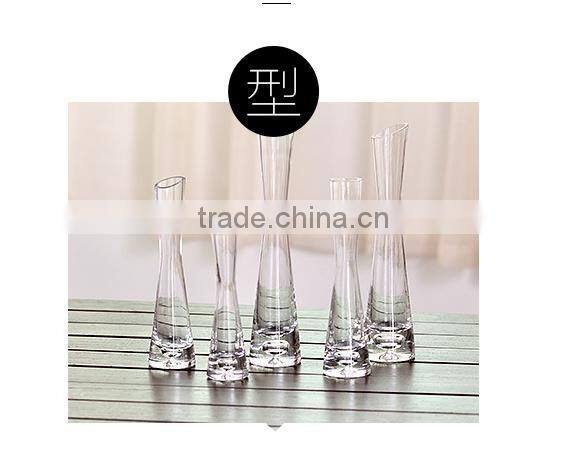Different types tall thin slanted clear glass flower vase for home decoration