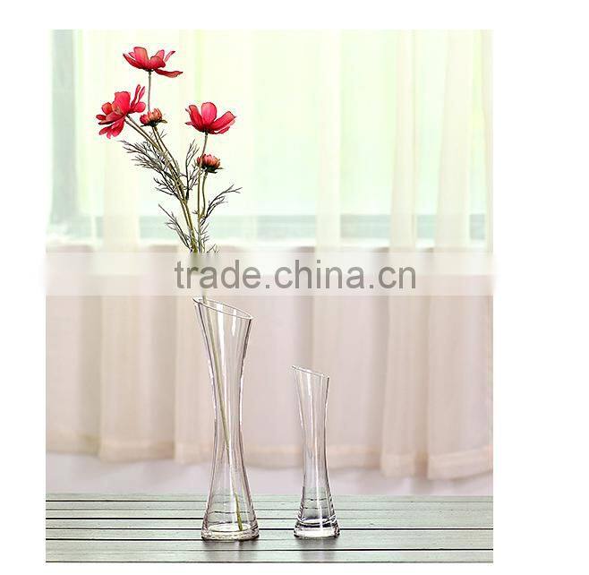 Different Types Tall Thin Slanted Clear Glass Flower Vase for Home Decoration