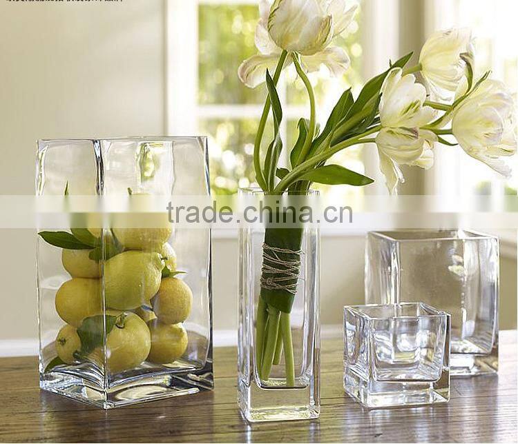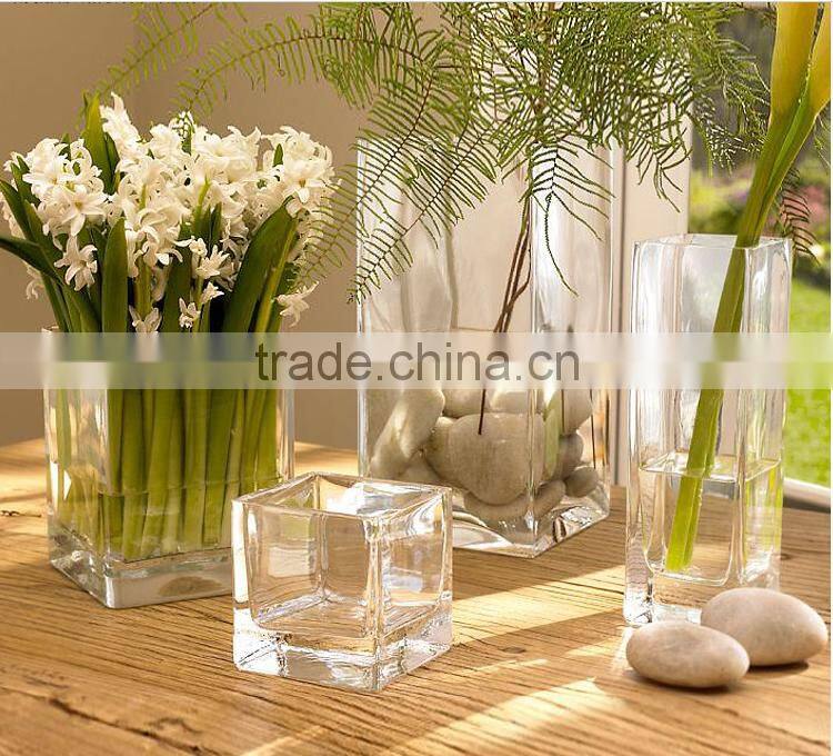 Square Home Decor Table Centerpieces Clear Glass Vase for Flower Arrangements