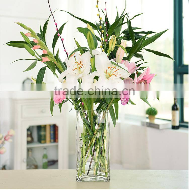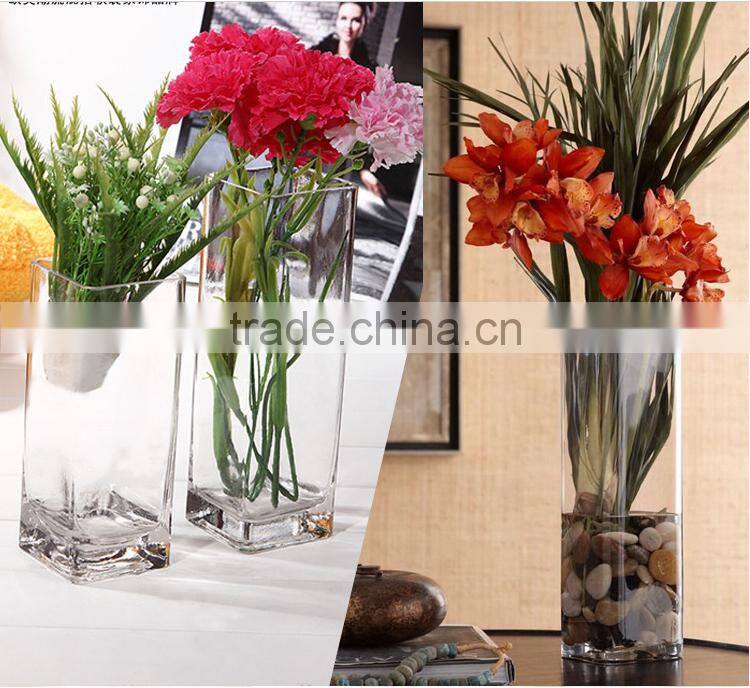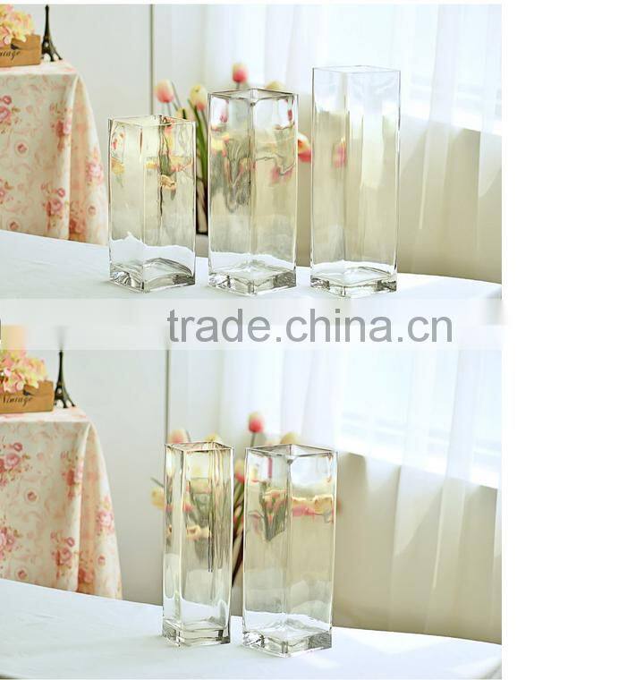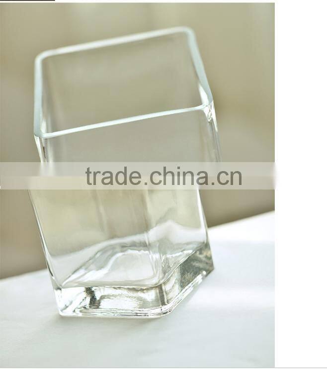 Square home decor table centerpieces clear crystal glassware vase for flower arrangements