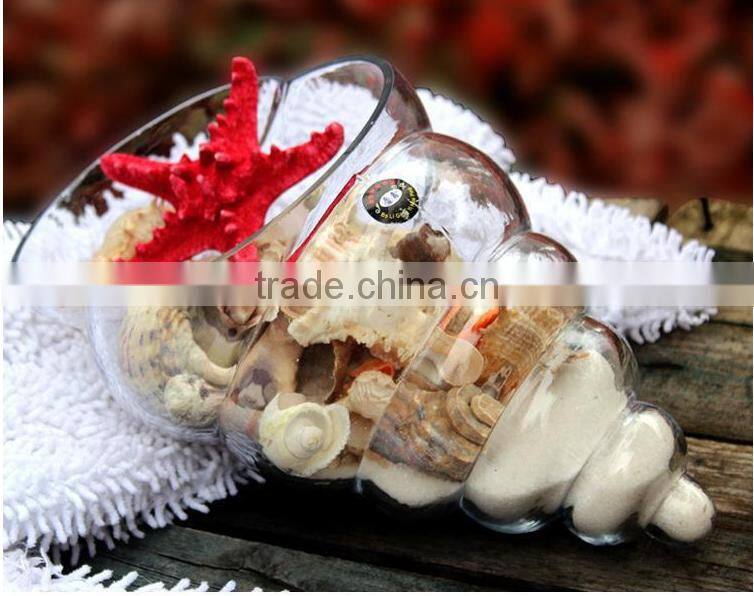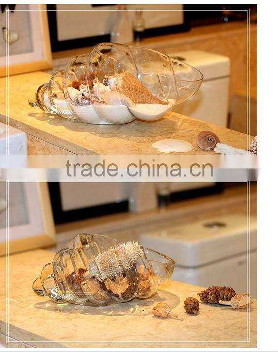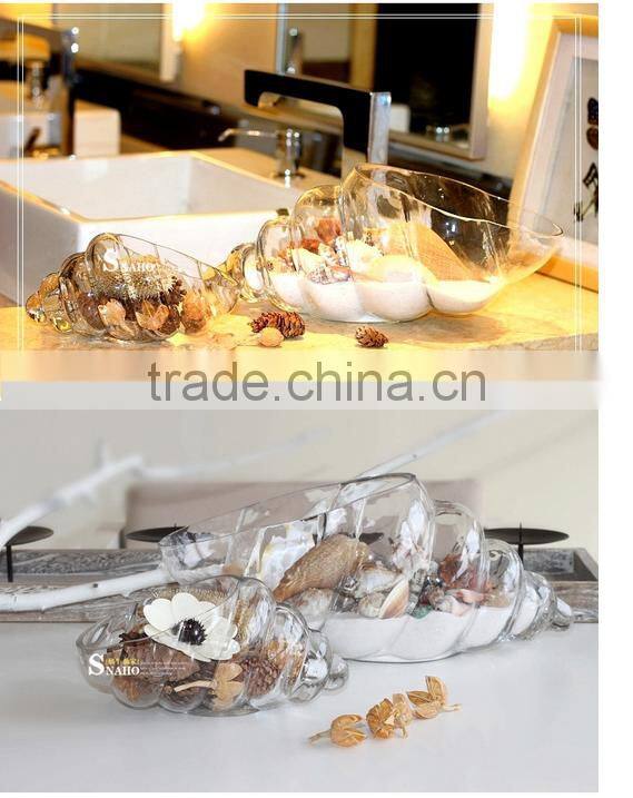 Creative home indoor decoration conch shaped micro landscape clear hand blown glass vase