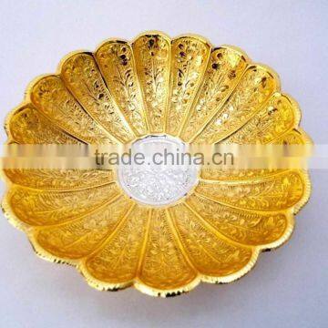 Handmade wedding gift, return gift, promotional gift, corporate gift and New Year gift item gold and silver plated bowl and tray