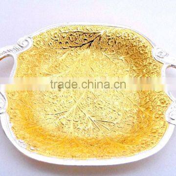 Handmade wedding gift, return gift, promotional gift, corporate gift and New Year gift item gold and silver plated bowl and tray