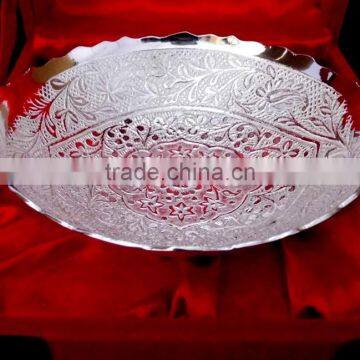 Handmade wedding gift, return gift, promotional gift, corporate gift and New Year gift item silver plated bowl and tray