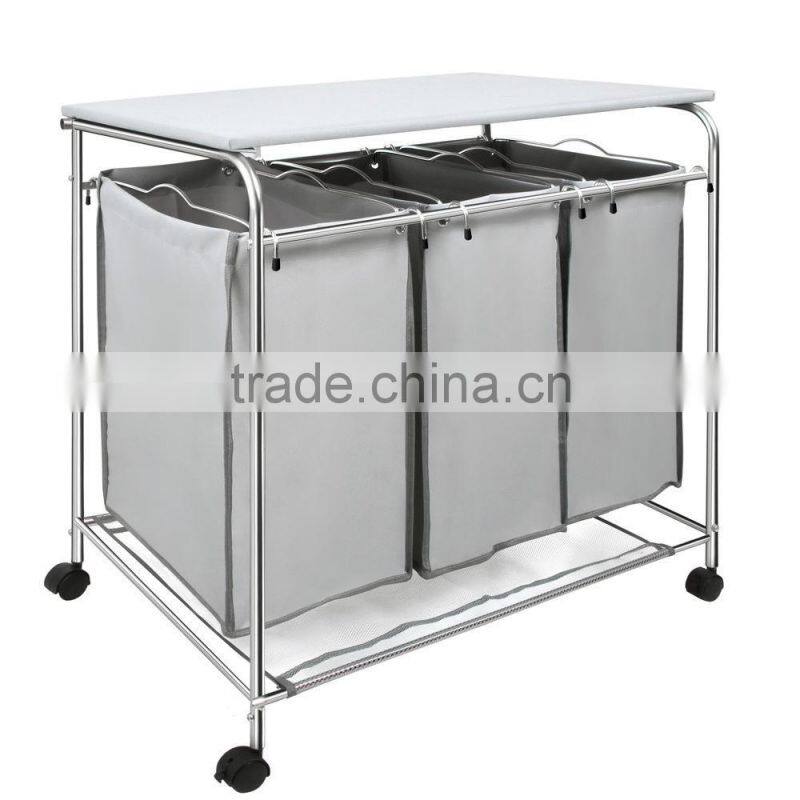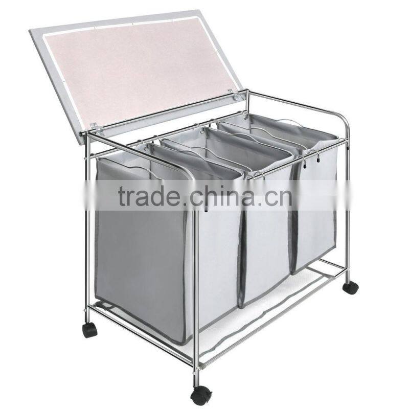 Vivinature 3 Lift-off Bags Laundry Sorter With Foldable Ironing Board, Multifunctional Laundry Cart