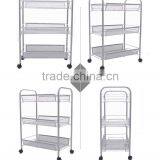 Metal Mesh Rolling Cart Trolly Organizer Shelves Handle Portable Style