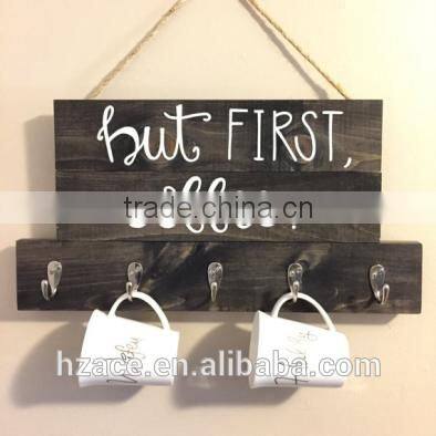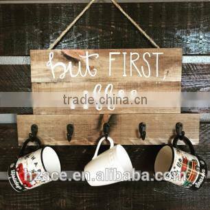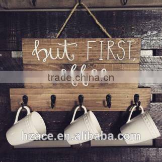 Wooden Coffee Sign Twine and Hooks, Personalized Coffee Gift