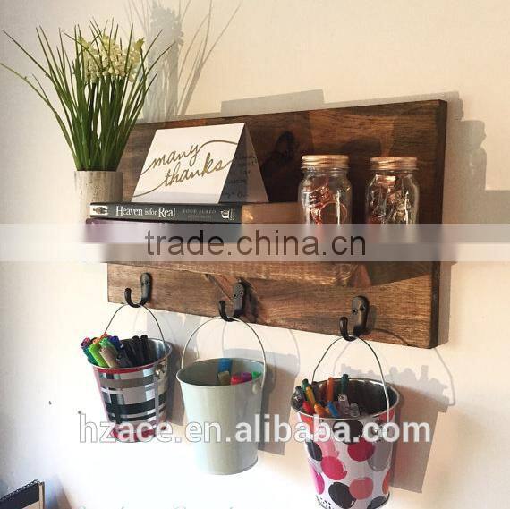 Cute Item Name:Wooden wall hanging shelf with hooks