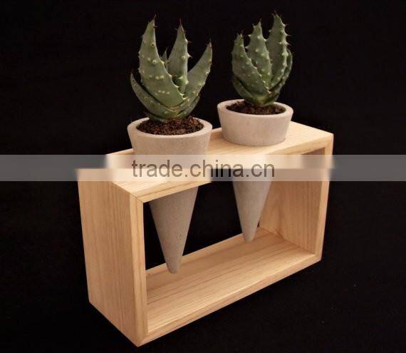 Concrete Mini Planters in Wooden Frame