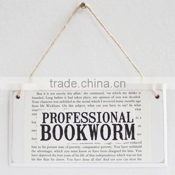 For sale is a white wooden door sign with twine. It can be rated as the first-class for the bookworms that prefer to stay at home and some outfit niubable men that pretend to like reading.