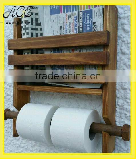 Rustic Wooden Wall Double Toilet Roll Holder and Book Magazine Rack - Hand Made