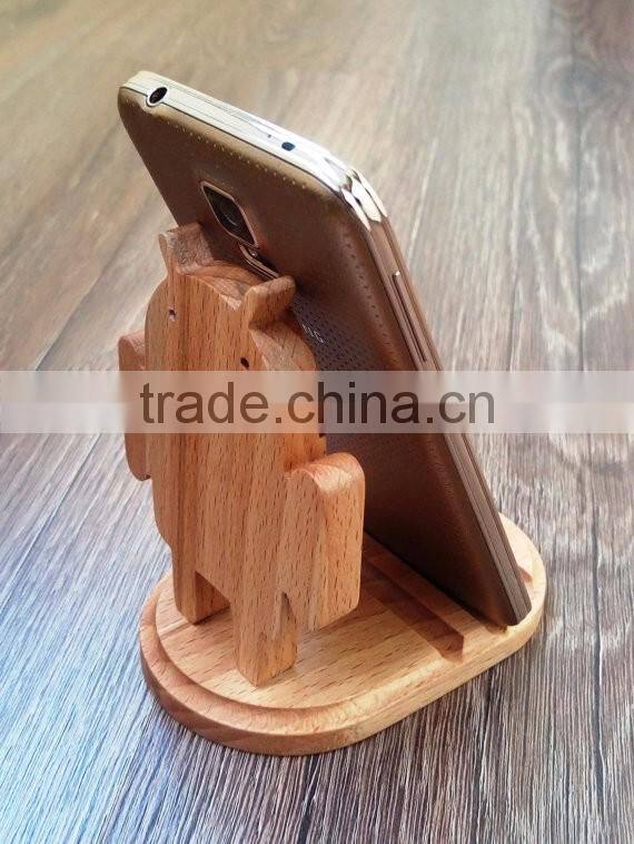 Wooden phone holder Android robot