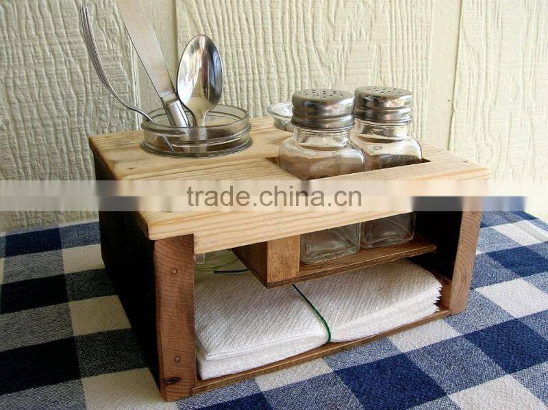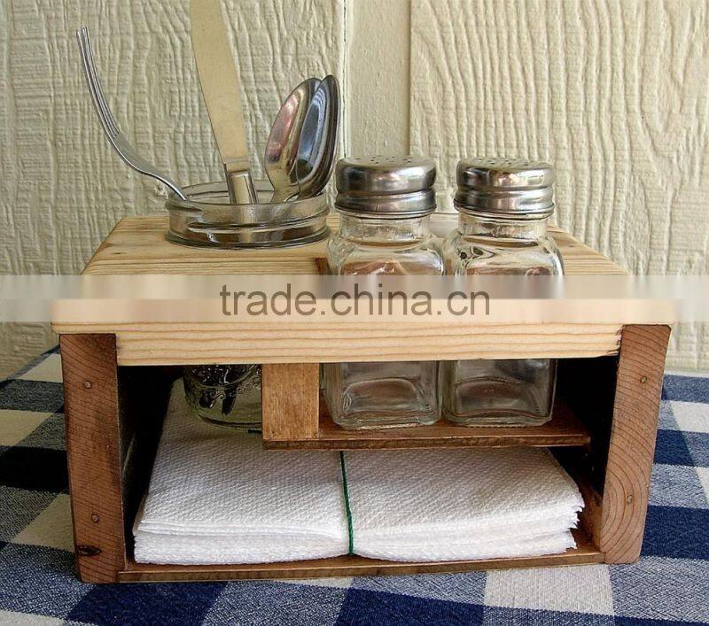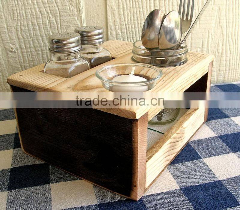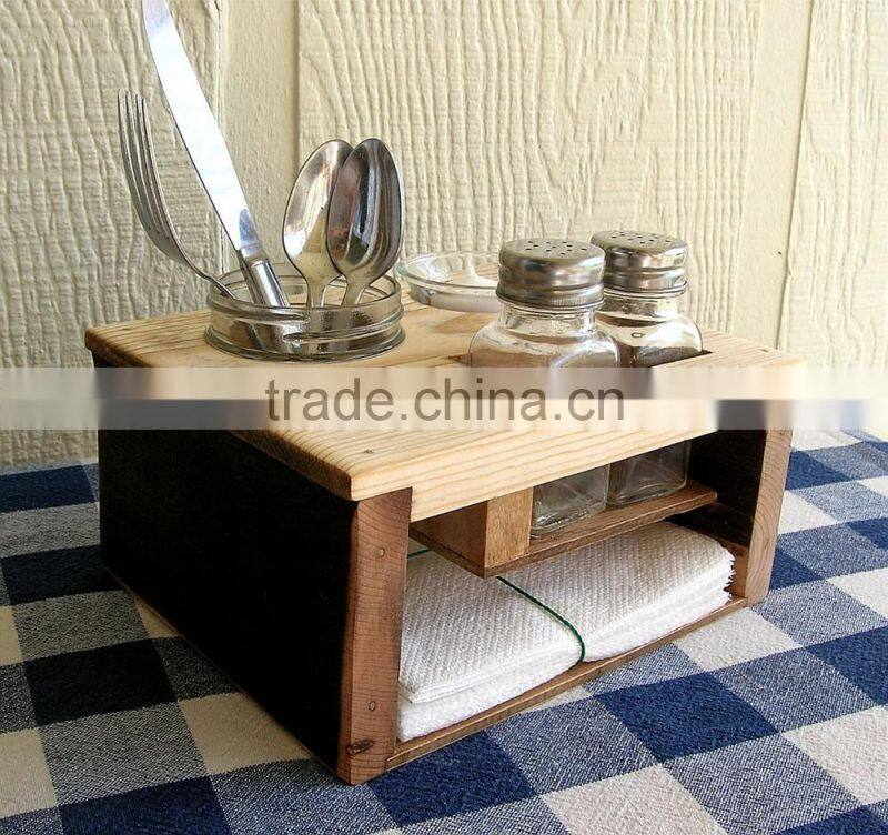Kitchen Organizer - Picnic Table Caddy - Silverware Salt and Pepper Napkin Candle Holder