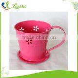 Cheap Bulk Mini Powder Coated Metal Iron Tea Cup and Saucer Flower Pot for Home Decoration