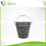 Shabby Black Cheap Outdoor Galvanized Metal Bucket Vase With Wooden Handle