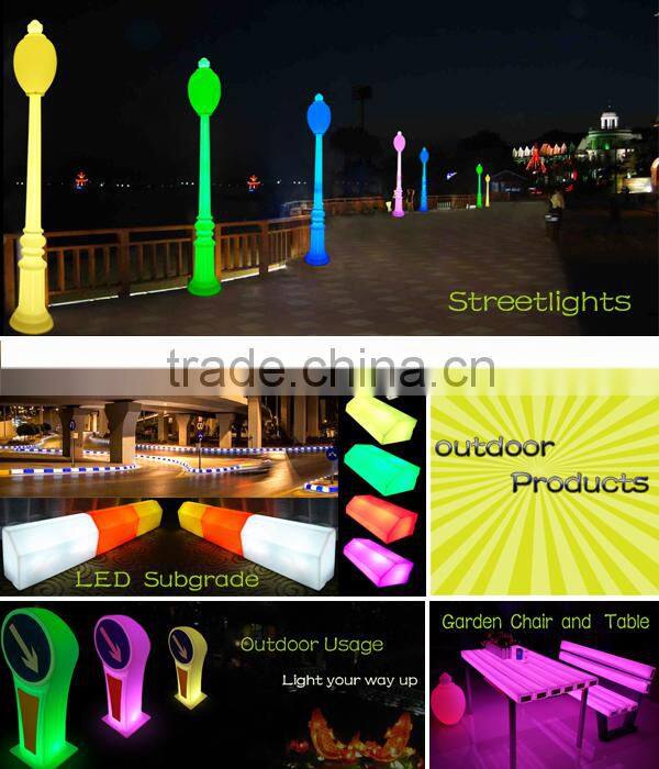 2. Q: How many kinds of products in your factory ? A: we have a large range of products, led table, led chair/stool/sofa, ice bucket, led lamp, bar counter, flower pot, other decors,..