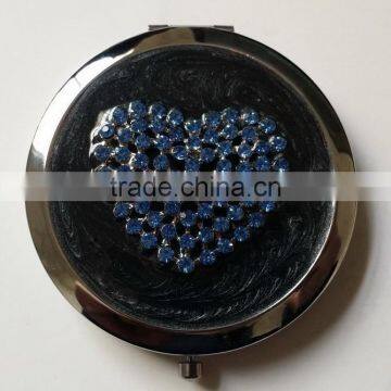 Decorative Heart Design Decor Compact Mirror With Rhinestones & Black Enamel