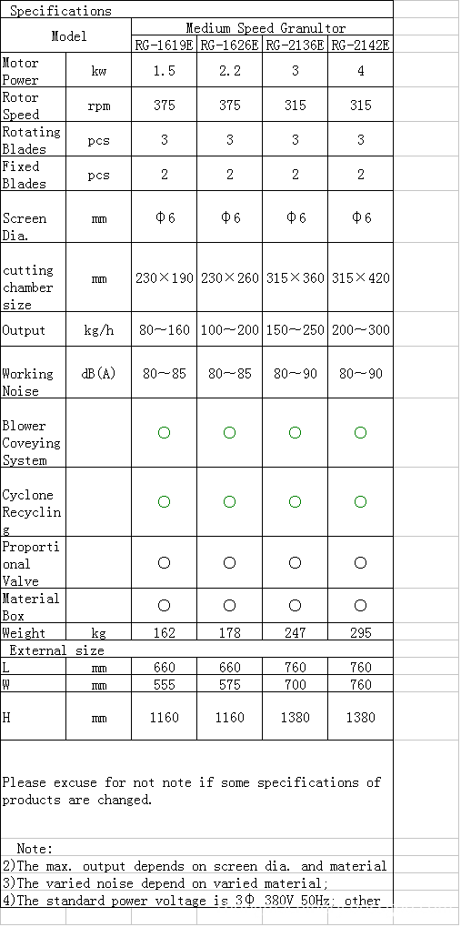 RG Series Beside-the-Press Granulators are installed beside injection molding machine, feeding by Robot or manpower, to crush small stub bar.The machine works to reduce the the material waste and pollution, and increase the material availability to save manpaower and production cost.