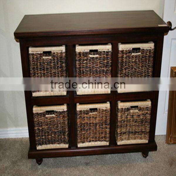 100%handmade natural low price wooden and willow cabinet