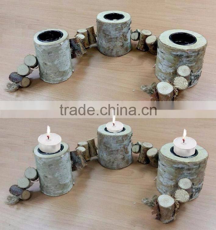 NATURAL TREE TRUNK/BRANCH 3-PC TEA LIGHT HOLDER