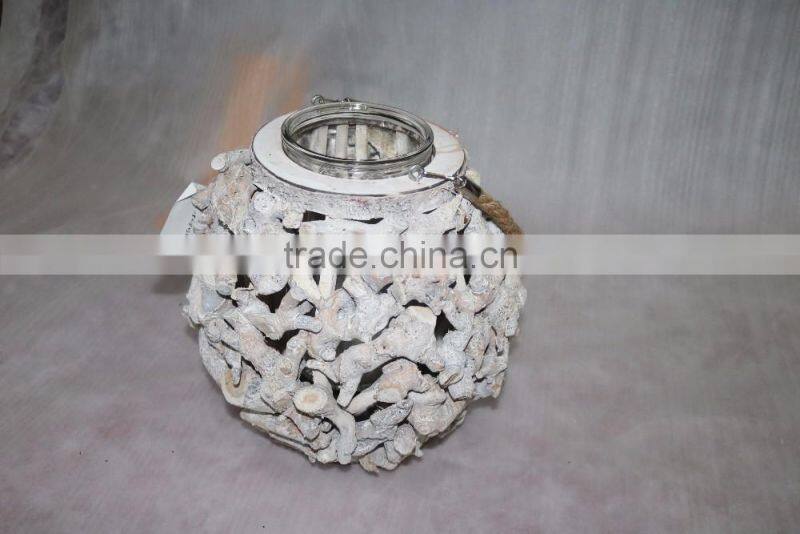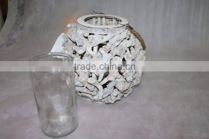 Decorative Handmade Wooden Tea Light Candle Holder Glass for Decoration