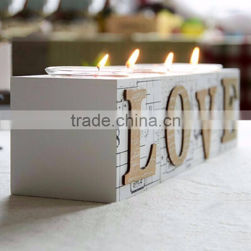 New Quality White Love Wooden Candle Holder Stand Home Decor 4 in 1 Set